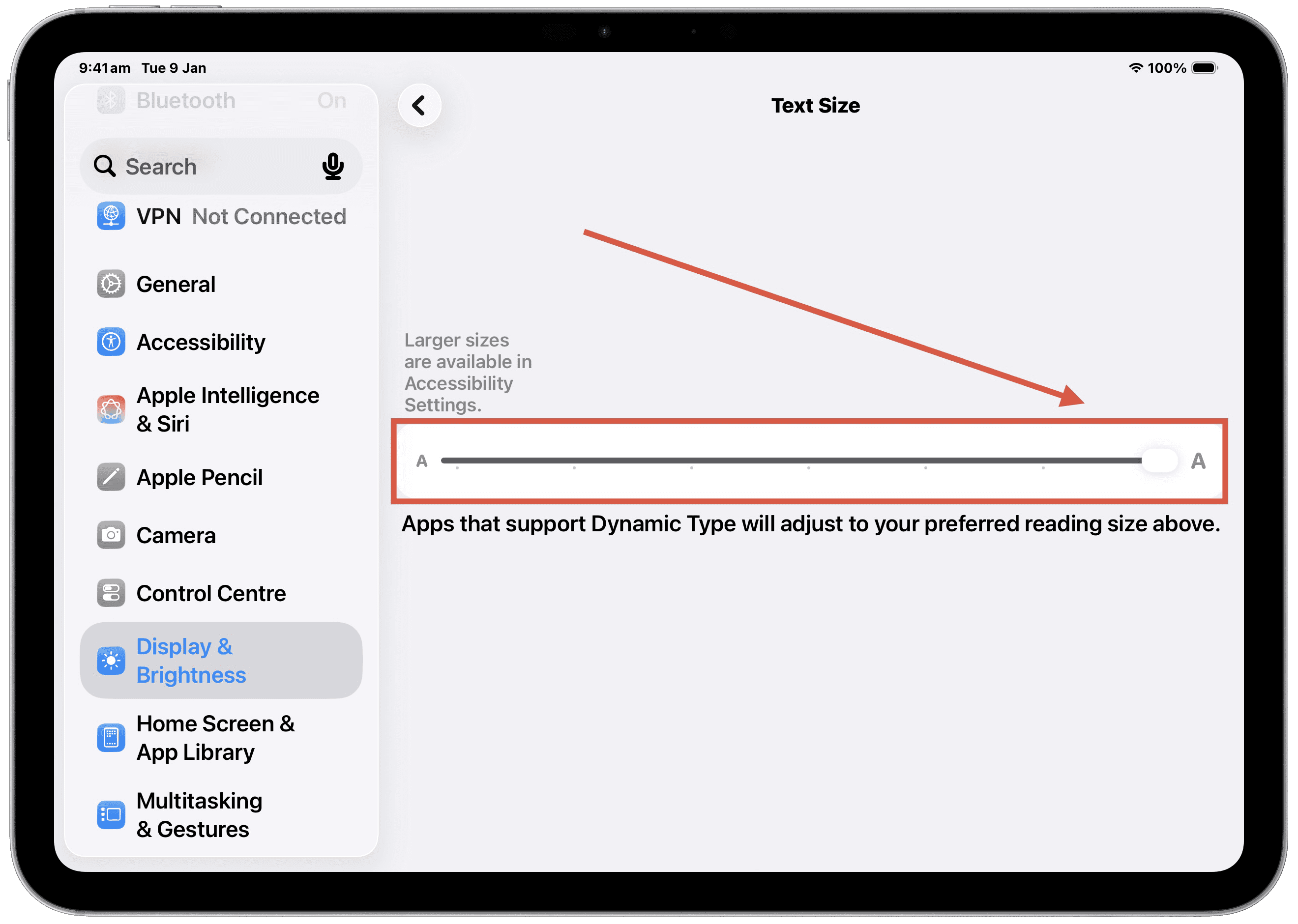 2. Tap Display & Brightness (left column) and then Text Size (right column)